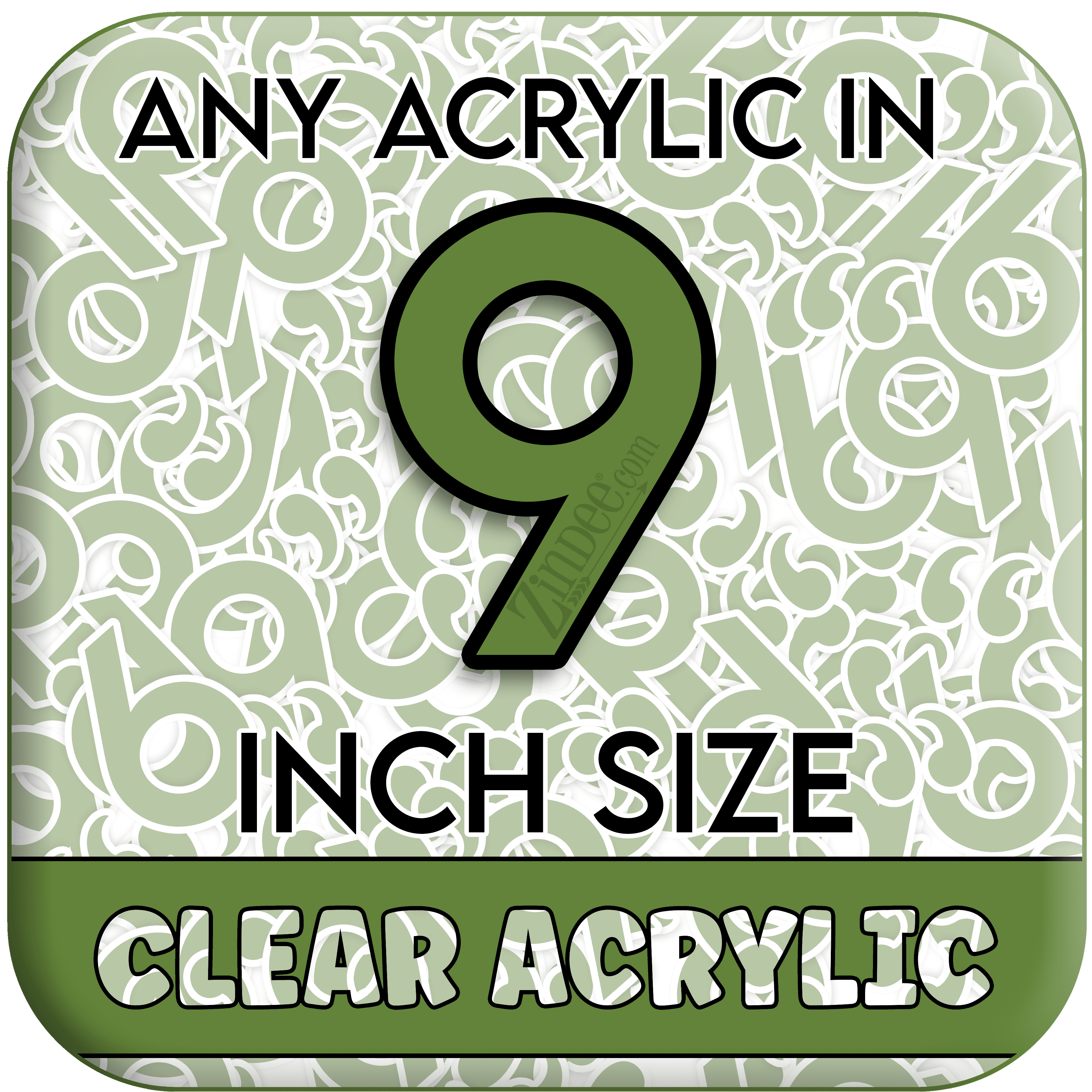 This is to order any Zindee acrylic shapes in a size of 9 inch in CLEAR acrylic.